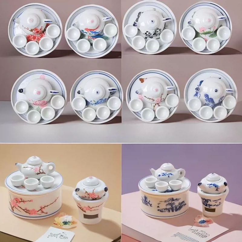 Miniature porcelain tea sets are meticulously crafted, scaled-down replicas of traditional tea services, highly sought after by modern collectors and interior design enthusiasts alike. These cute and