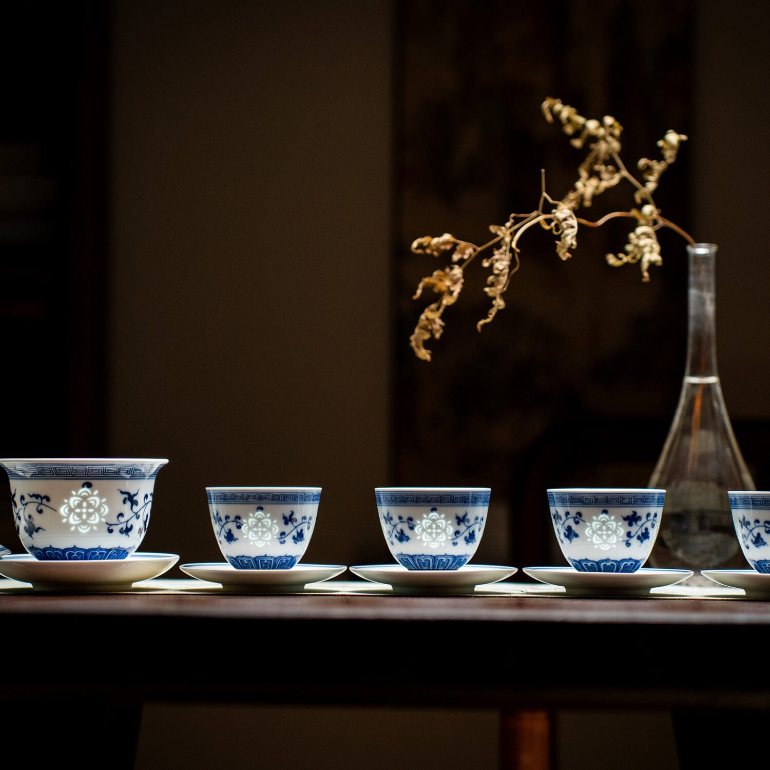 10-Piece Hand-Painted Treasure Lotus Tea Set