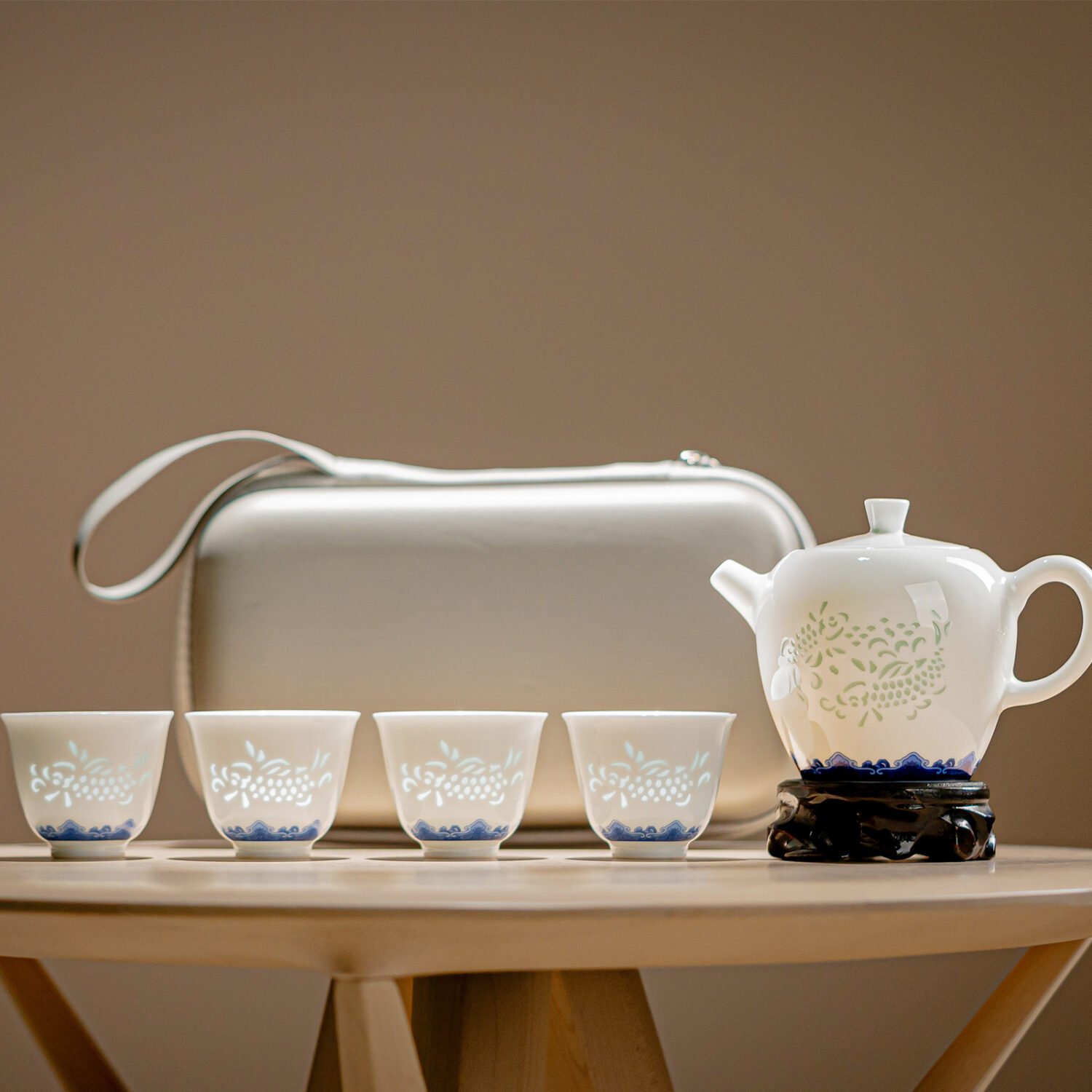 10-Piece Hand-Painted Shandan Flower Tea Set